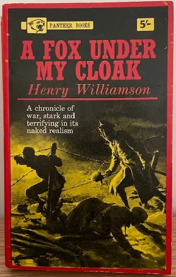 'The battle scenes in A Fox Under My Cloak are described with tremendous power and realism; all the more striking by contrast with the scenes of life at home as seen through the eyes of other members of Phillip's family. The book contains much, however, that is in lighter vein; the account of Phillip's interlude in training in a English country town is especially full of brilliant and amusing impressions of a vanishing world of leisurely "good form". Henry Williamson has waited many years to write this novel. "A Fox Under My Cloak," he says, "is not only the soldier's world. It was written, after much research among archives and upon the scene of the battle near Béthune, as part of the tragedy of European man, divided against himself. It was written with love for all remembered faces of nearly forty years ago. There are no villains in the story – only human beings."'